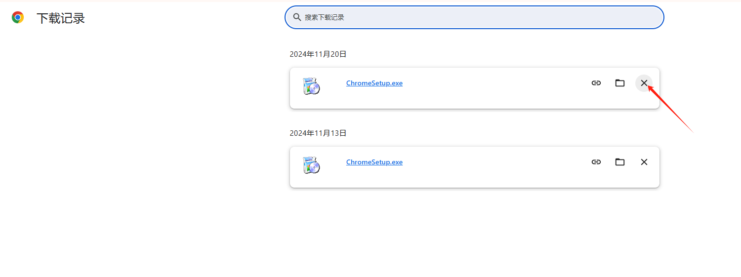 -要从下载列表中删除单个下载,请单击条目右上角的“X”按钮。(这不会清除Chrome保存到您计算机上的文件。)